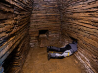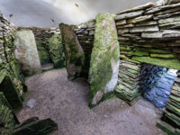 Im Camster Cairn gibt es einen sehr engen Zugang aber eine grosse Kammer. Das Dach war ursprünglich ebenfalls in Trockenbauweise geschlossen