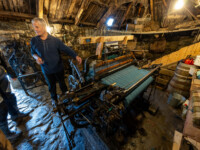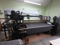 Voll funktionsfähiger Webstuhl für Harris-Tweed. Solche standen bis in die 70er in so manchem Haus und brachten den Bewohnern ein wichtiges Nebeneinkommen. Noch heute wird der 'Harris Tweed'-Stoff ausschliesslich von Privaten auf alten Webstühlen gewoben.